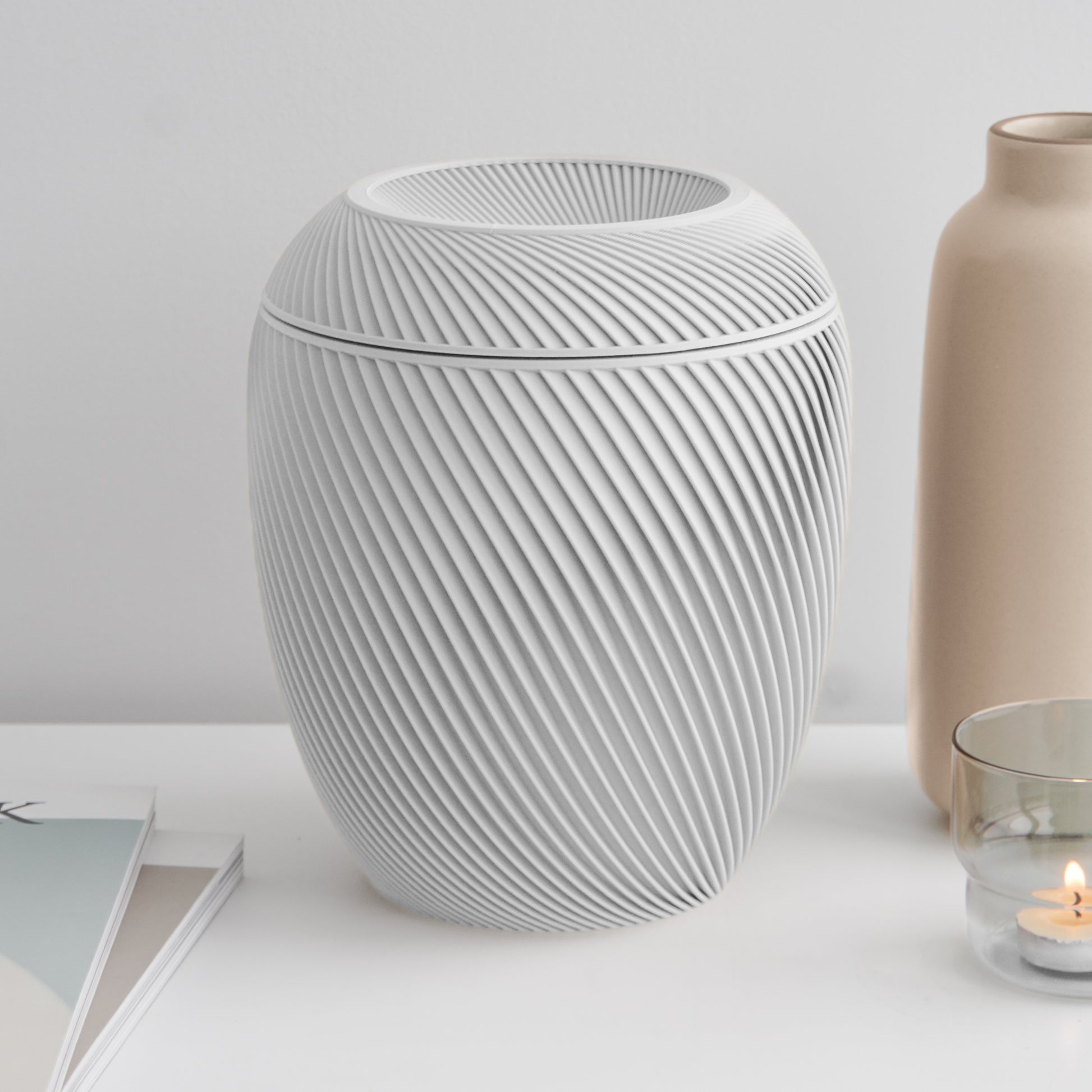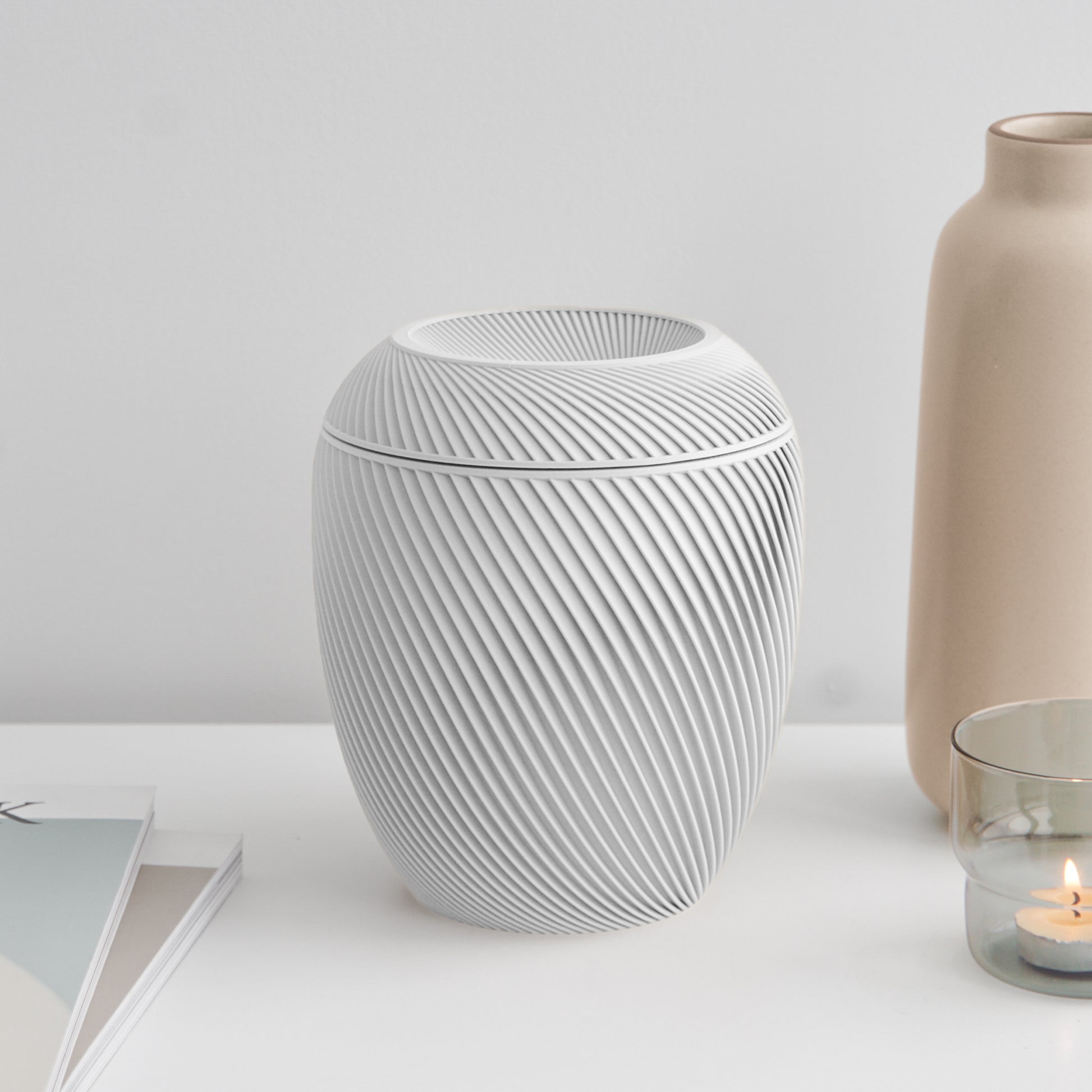 Each Fauna urn is 3D printed in Canada from a matte resin infused with natural mineral powder — giving it a smooth, premium finish that's lightweight, durable, and unlike anything else on the market.