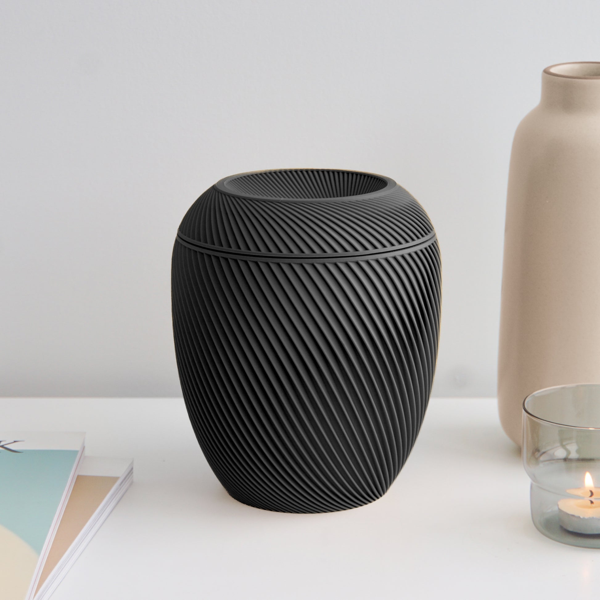 The Laurel Urn features a striking central helix design, inspired by the natural beauty of growth and renewal. This unique form not only sets it apart but also symbolizes the enduring connection between your loved one and the world around them. The graceful spiral is both modern and timeless, making it a meaningful tribute that blends seamlessly with your home décor.